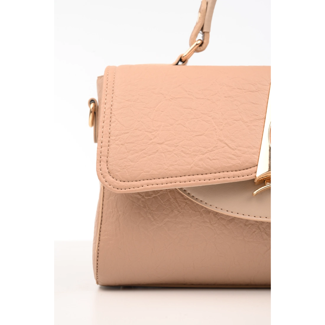 Elevate your style with the Urban Handbag, crafted from vegan, firm textured leather for a modern, sophisticated look. Its rectangular silhouette (17x26x12 cm) offers ample space while maintaining a sleek profile. Gold-plated details on the handles and logo add a touch of luxury, making it perfect for both workdays and special occasions. A stylish, cruelty-free accessory that combines elegance with practicality.