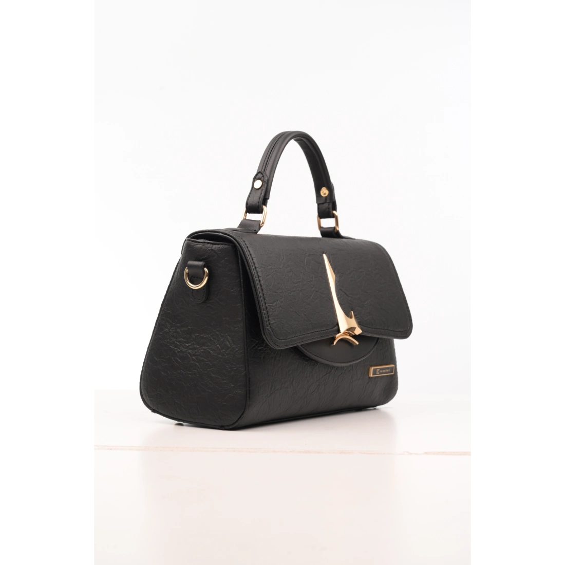 Elevate your style with the Urban Handbag, crafted from vegan, firm textured leather for a modern, sophisticated look. Its rectangular silhouette (17x26x12 cm) offers ample space while maintaining a sleek profile. Gold-plated details on the handles and logo add a touch of luxury, making it perfect for both workdays and special occasions. A stylish, cruelty-free accessory that combines elegance with practicality.