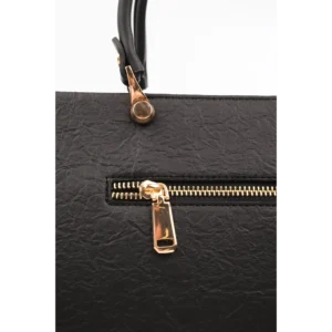 Elevate your style with the Vibe Tote, crafted from vegan, firm textured leather for a modern, sophisticated look. Its rectangular silhouette (22x30x14cm) offers ample space while maintaining a sleek profile. Gold-plated details on the handles and logo add a touch of luxury, making it perfect for both workdays and special occasions. A stylish, cruelty-free accessory that combines elegance with practicality.