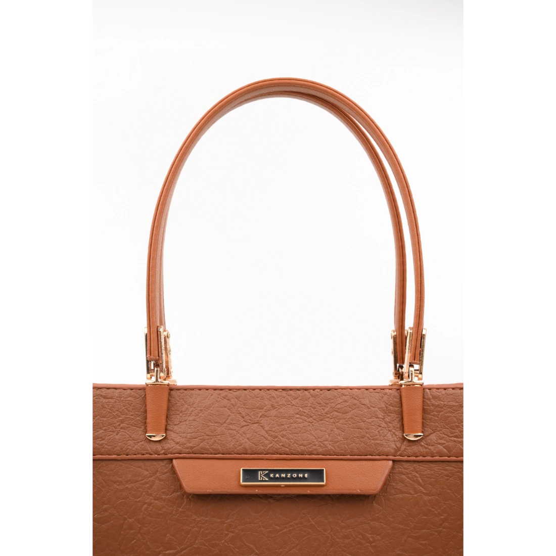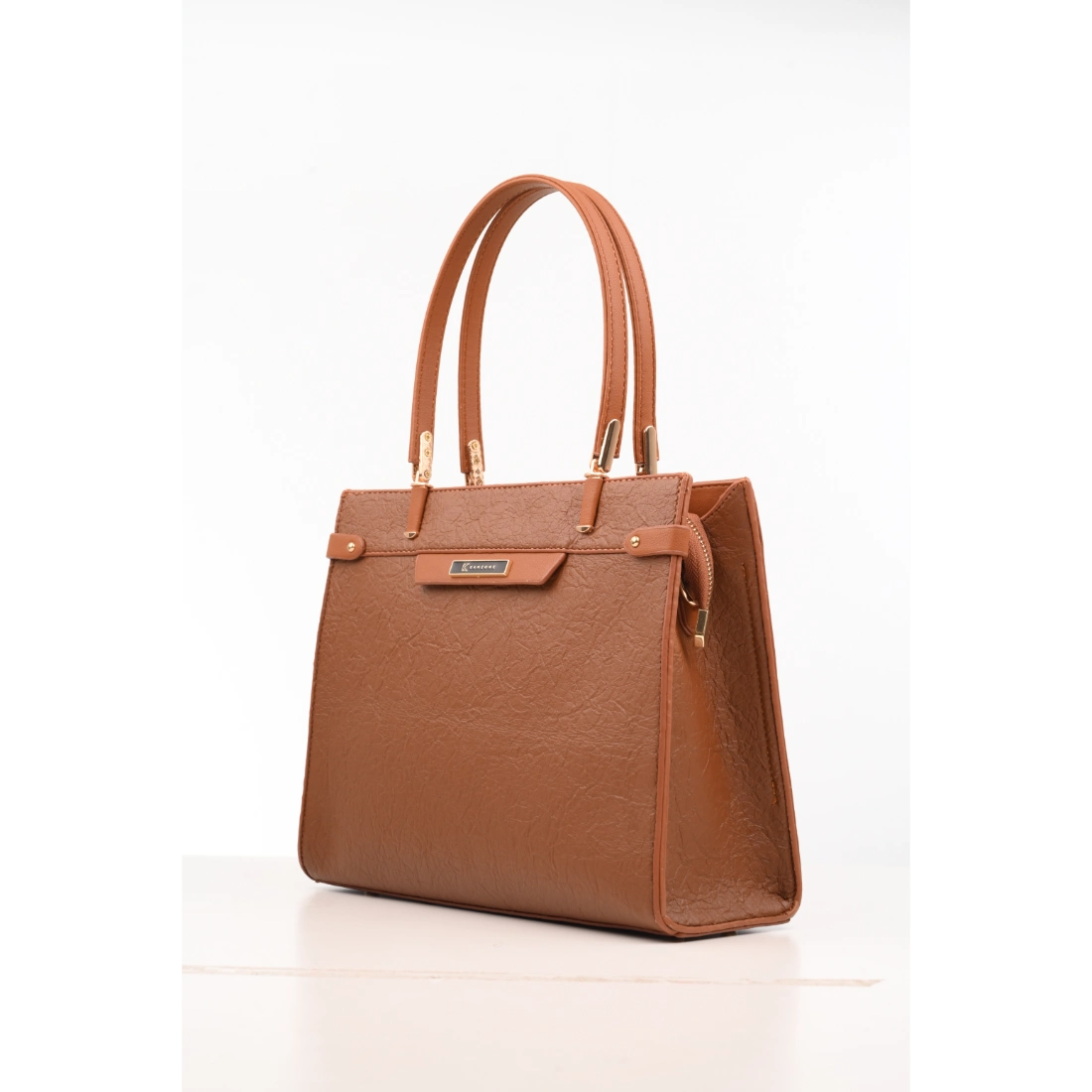 Elevate your style with the Luxe Handbag, crafted from vegan, firm textured leather for a modern, sophisticated look. Its rectangular silhouette (23 × 28 × 10 cm) offers ample space while maintaining a sleek profile. Gold-plated details on the handles and logo add a touch of luxury, making it perfect for both workdays and special occasions. A stylish, cruelty-free accessory that combines elegance with practicality.