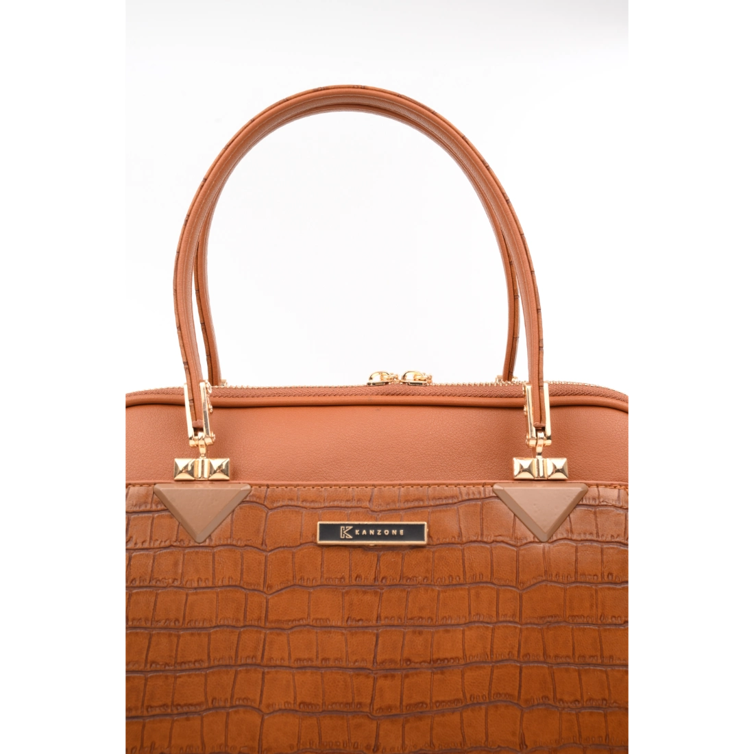 Make a statement with the Classic Satchel, a chic and versatile bag crafted from premium vegan leather. Its trapezoid silhouette (20 × 30 × 11 cm) and textured front panel exude understated sophistication, while gold-plated details on the zipper and handles add a touch of luxury. Perfect for day-to-day elegance or special occasions, this cruelty-free satchel combines style, functionality, and timeless charm.